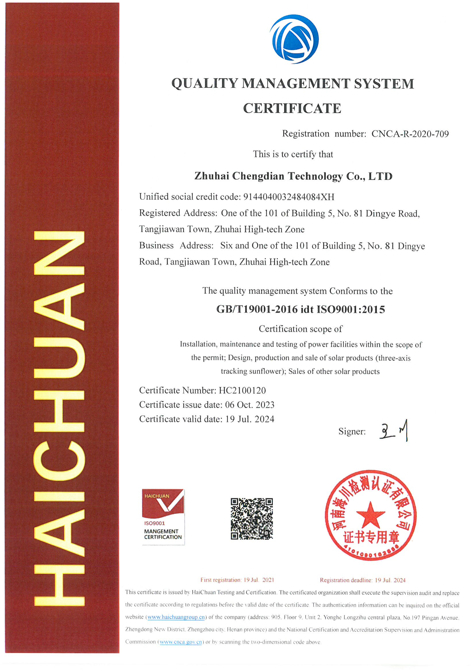CDSOLAR (Zhuhai Chengdian Technology Co., Ltd.) was established in 2014. It is a new high-tech enterprise with independent intellectual property rights and is committed to building a new high-tech enterprise with new energy application technology as the core, integrating research, manufacturing, and sales. The company's main business includes photovoltaic Solar tracking systems, power-generation glass billboards, power-generation glass waste sorting boxes, power-generation glass waste sorting booths; undertake photovoltaic grid-connected distributed systems, off-grid power supply systems, photovoltaic lighting and lighting engineering construction, and solar related products production and sales. At the same time, it provides special photovoltaic application solutions and one-stop engineering services and can design high-quality photovoltaic power supply technology and economic solutions for customers according to the needs of different customers.